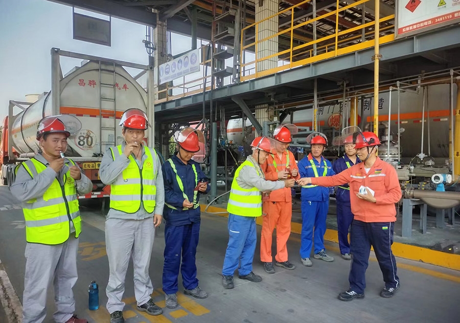 此外,為做好室外作業人員防暑工作,第三工程事業部、第四工程事業部、灌裝站針對高溫炎熱天氣紛紛開展“夏日送清涼”活動。第三工程事業部黨支部分別在甲烷氯化物、有機硅事業部現場設置應急聯絡點,安排專人值班,配備對講機便于聯絡,聯絡點放置血壓計、測溫槍、綠豆湯、以及藿香正氣液、風油精等防暑降溫藥品,作業前值班人員首先對作業人員的體溫、血壓等情況進行測量,建立臺賬,以便于對員工身體異常情況及時掌握。第四工程事業部、灌裝站黨支部則分別為室外員工和外來司機送去純凈水、藿香正氣液、淡鹽水等防暑物品,表示慰問的同時積極聽取大家的困難和建議,把關心和清涼送入現場,送入人心。